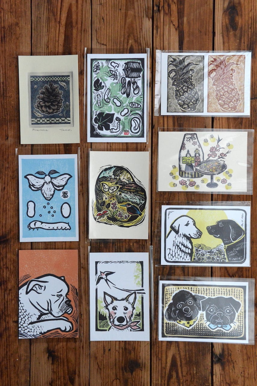 自然や動物をモチーフにしたデザインのポストカード。